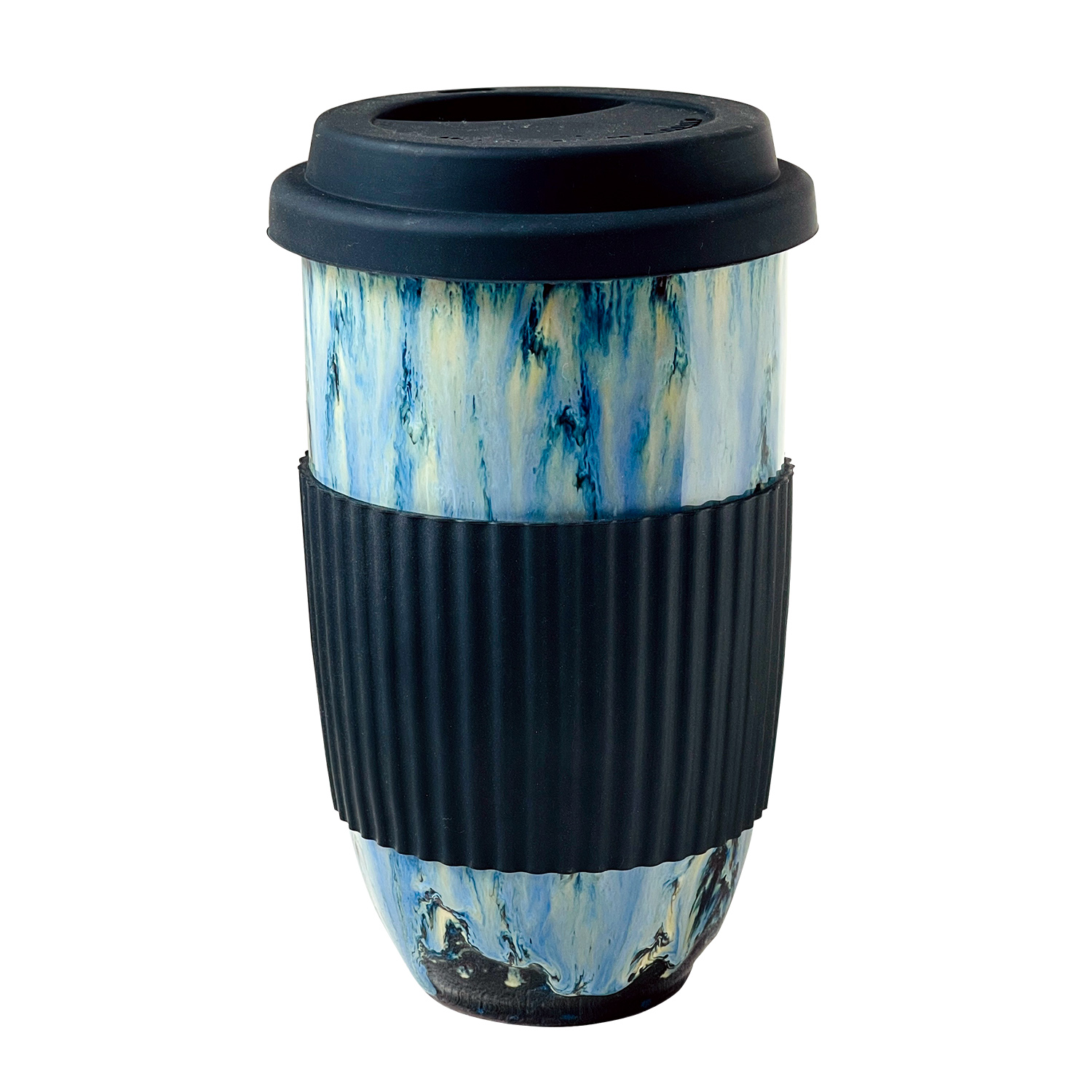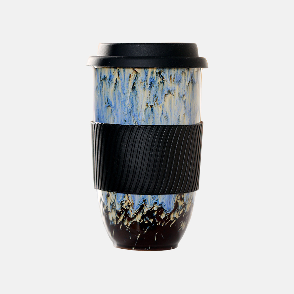 A black vertical silicone cup cover is paired in the middle of the cup body, which not only provides anti slip and anti scalding effects, but also adds a modern design sense to the cup through the contrast of material and color.